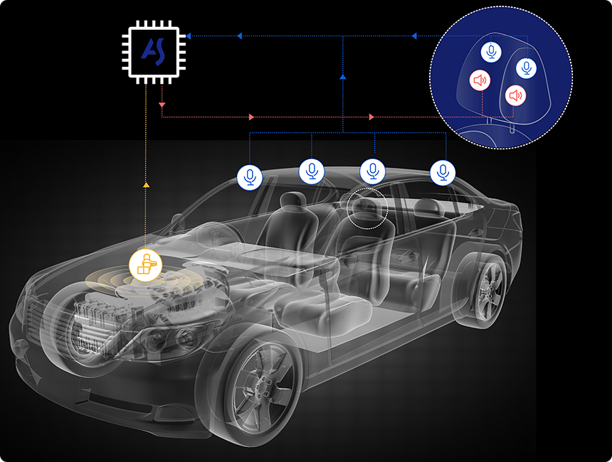 自有知识产权的声场计算模型,微秒级延时,覆盖频率高,有效降低胎噪、风噪、阶次噪声以及结构噪声。